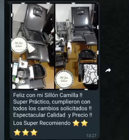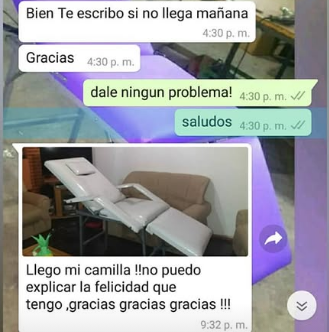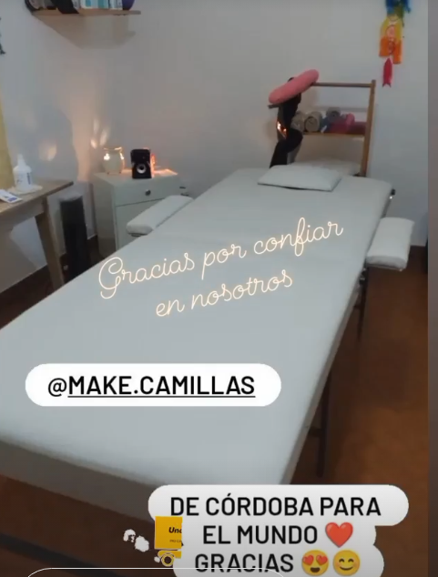 Somos MaKe Camillas, una empresa familiar que nacio en 2018 con el objetivo de equipar espacios de trabajo con productos de calidad a un precio accesible. a lo largo de los años fuimos mejorando nuestros productos enfocandonos en la practicidad y resistencia de los mismos, Todos nuestros diseños son reforzados, las trabas de las patas son abulonadas (no atornilladas ni remachadas) para asegurar la firmeza de la camilla y que no tenga movimientos indeseados, todas las estructuras tienen un refuerzo al medio para que no se hundan con el tiempo, fabricados con materiales de primer calidad, madera seleccionada sin nudos (para que no sufra roturas), goma espuma de alta densidad, ecocuero resistente de primera calidad, estamos pendientes de cada detalle y trabajamos dia a dia para brindarte siempre la mejor calidad al mejor precio!